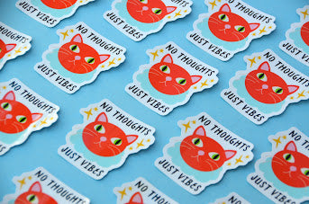 No Thoughts Just Vibes Cat Sticker