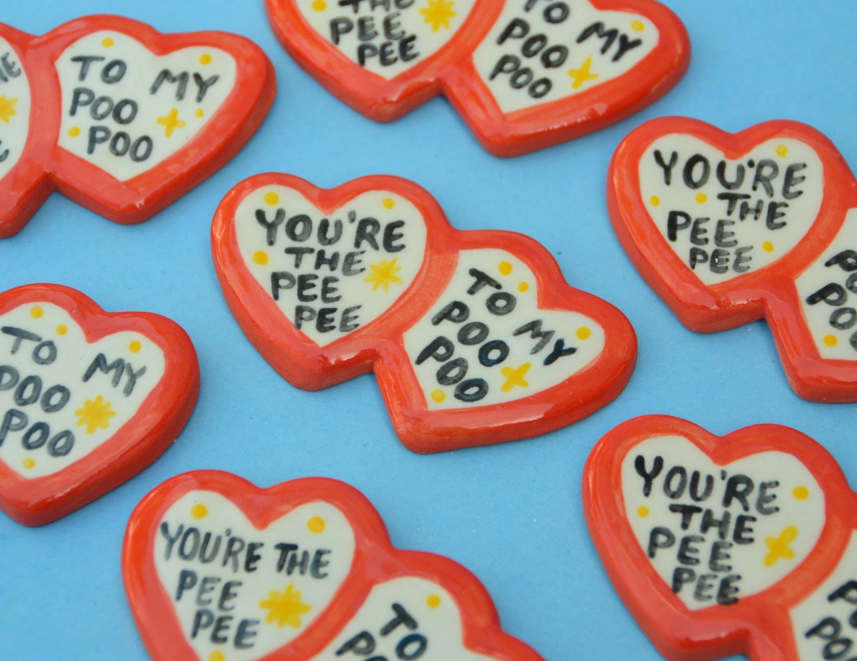 You? Are the pee pee. To? My poo poo. Give this incredibly romantic refrigerator magnet to the peepee in your life. They are sure to be woo'd instantaneously by this incredible gesture of love. Platonic friend? That's fine, too. Let them be dazzled. You're sure to climb to the very top of their social calendar after the gift of this divine item. Roughly 2" across and has two strong magnets glued to the back.